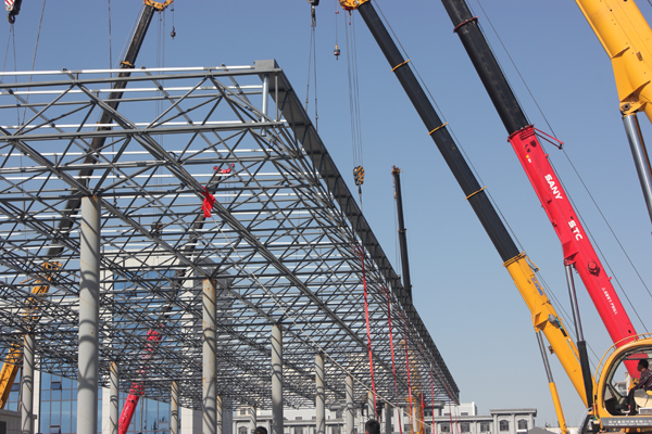 以組裝完成的鋼結(jié)構(gòu)網(wǎng)架進(jìn)行吊裝