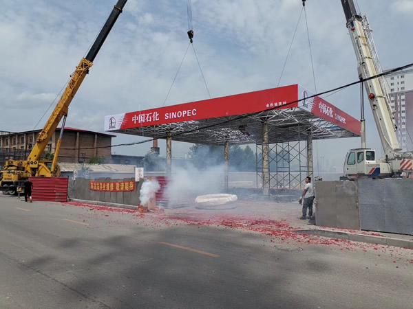 石化白山加油站網(wǎng)架罩棚吊裝大吉